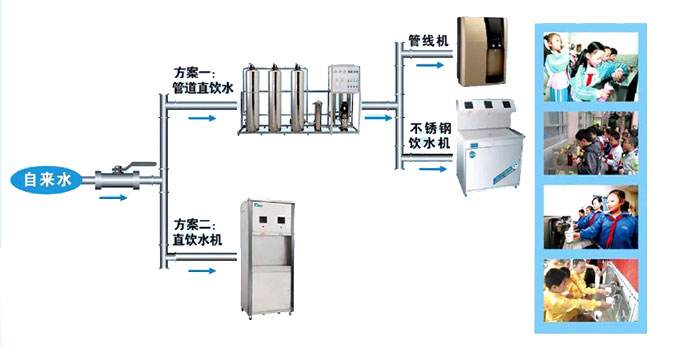 管道直飲水以稱分質(zhì)供水,凈水工藝是對自來水進行深度處理,它通過過濾、軟化、膜分離( RO 或 UF )殺菌等方法,去除水中有害重金屬、有機物、細菌及病毒等雜質(zhì),使其成為優(yōu)質(zhì)飲用凈水(或純凈水),通過專設(shè)的特種衛(wèi)生管道直接送入每家每戶,供居民使用,與原有的自來水徹底分開,原自來水成為日雜用水。這種把兩條管道分不同水質(zhì),供應(yīng)飲用水和生活用水方式稱作管道優(yōu)質(zhì)飲用直飲水或者分質(zhì)供水。